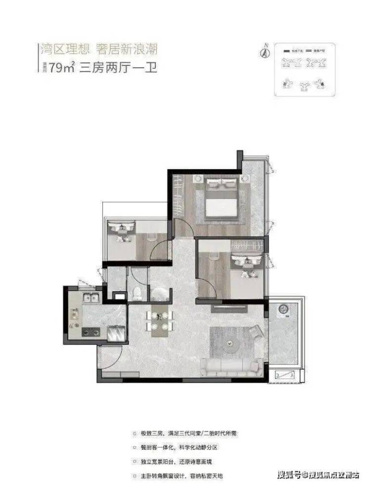 智慧生活: 入口人脸识别、车牌识别、大堂人脸识别系统、电梯无接触通行系统、智能门锁系统,打造未来新生活无感归家畅行体验。 高得房率: 来自深圳的爆款户型,79㎡3房1卫、89㎡3房2卫、105㎡4房2卫,全周期户型,90%以上超高得房率。