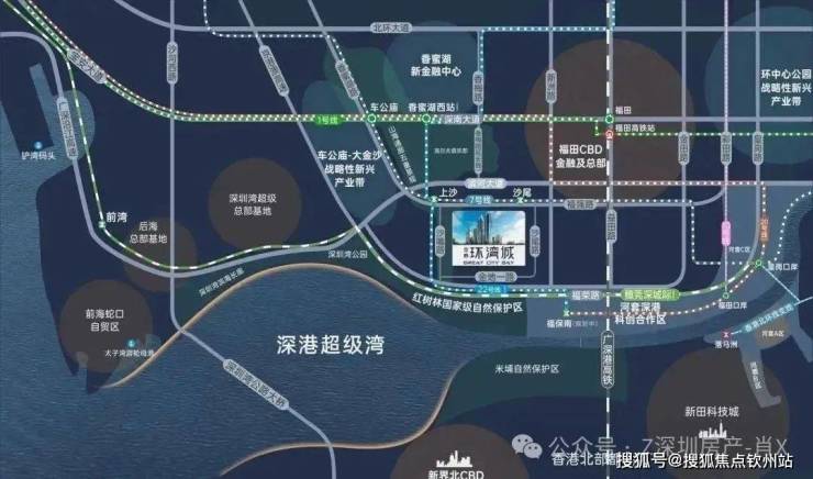 【立体交通 海陆畅达】双地铁线:7号线双地铁口优势;22号线双地铁上沙交汇站(规划中),1站直达香蜜湖新金融中心与河套深港创新合作区。·超级口岸:皇岗口岸深度改造,深港唯一24小时陆路通关口岸,3城轨+2地铁,迅捷连通深港河套两地。·联港通沪:沪深高速磁悬浮规划,约2.5h通达沪深,链接“上广深港”南中国超级都会群。·城际轨道:全面覆盖广深科技创新走廊的穗莞深城际铁路,贯通大湾区重要科技核芯;深广中轴城际铁路,直连广深城市中心;香港北环支线,再添深港连通新轨道,便利畅达尖沙咀。
