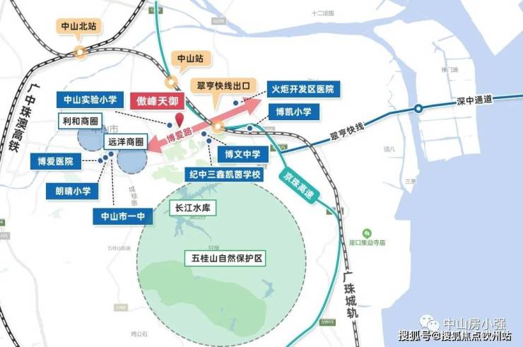 项目处于中山主轴博爱路和深中通道延线翠亨快线的黄金交汇点,深中融城第一环,多维交通构建广深珠港澳1小时生活圈,其价值不言而喻。