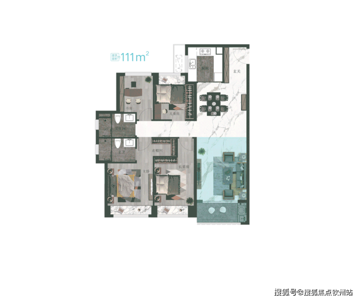 110㎡四房两厅两卫:南向主阳台,南北通透,中高楼层可享山海双景,总价 275-308 万。
