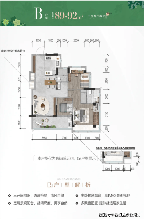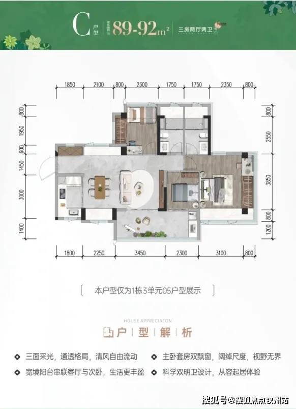 作为招商蛇口深圳公司首代、前海会展片区首个超级新规作品,项目建面约78-117㎡三至四房户型,拓展后实际使用率高达96%-105%,兼顾实用、宽敞、阳光与精致。