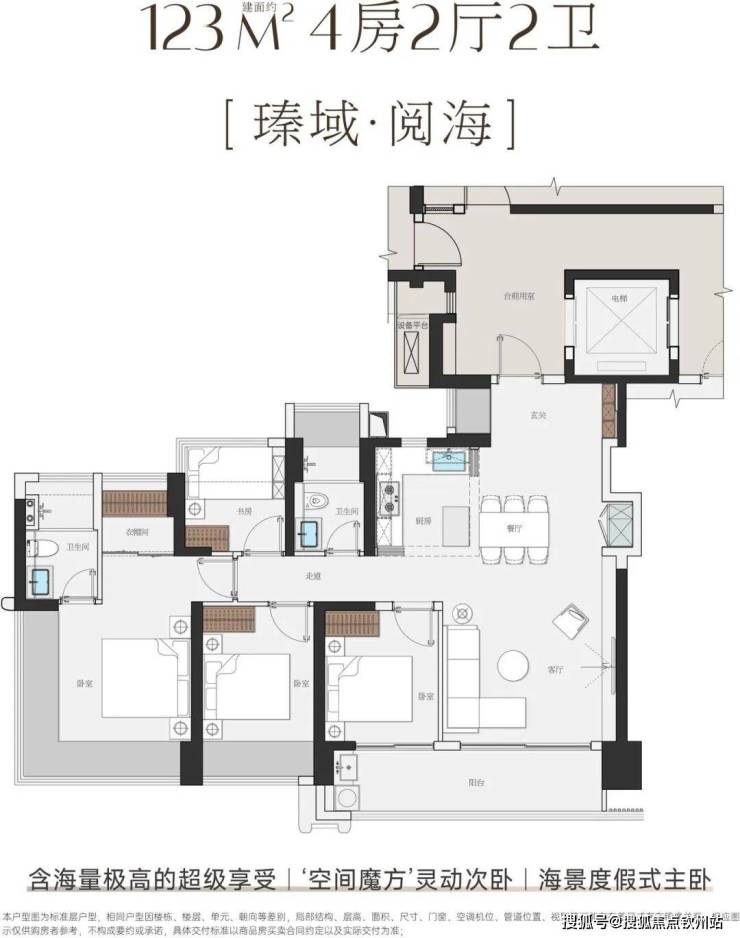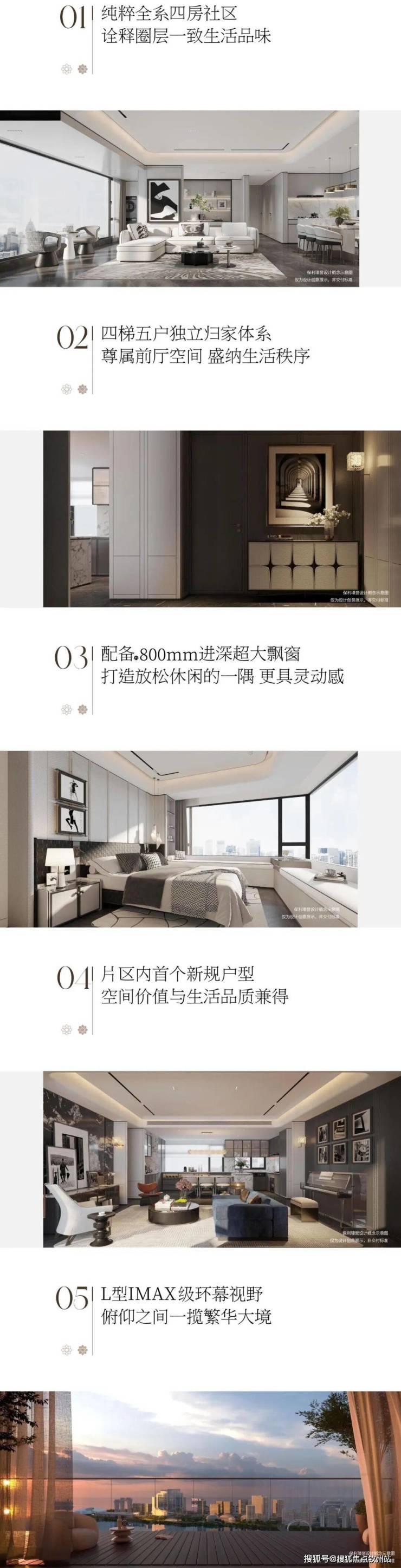 :规划 2 栋住宅楼,楼高 44-45 层,共 403 户,均为建面约 115-143㎡臻装纯四房,圈层纯粹性拉满,完全适配高端改善需求。