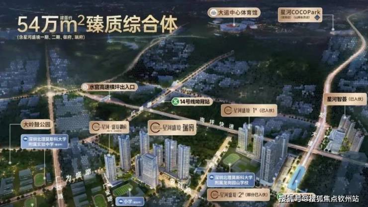总建筑面积约54万㎡(含盛境一期、二期、御府、瑞府),集住宅、商业、公寓、办公等于一体的臻质综合体,打造星河大城品质生活圈,传承星河系匠心品筑精神,礼献都市人居典范。