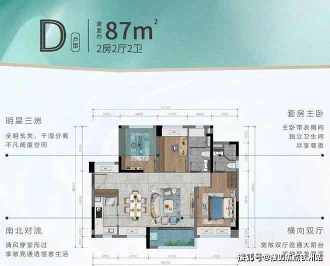 建面约87㎡2+1拓展空间,稀缺大横厅,明星户型