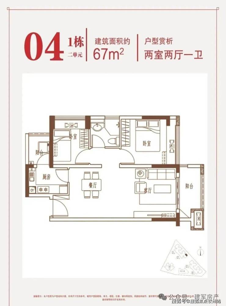 约67㎡两房:东南朝向,片区内唯一在售2房。