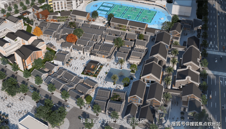 同时,项目延续历史文脉,修缮保护古建筑,活化利用历史街区,融入岭南文化元素,打造约3万㎡岭南文保商业街区。
