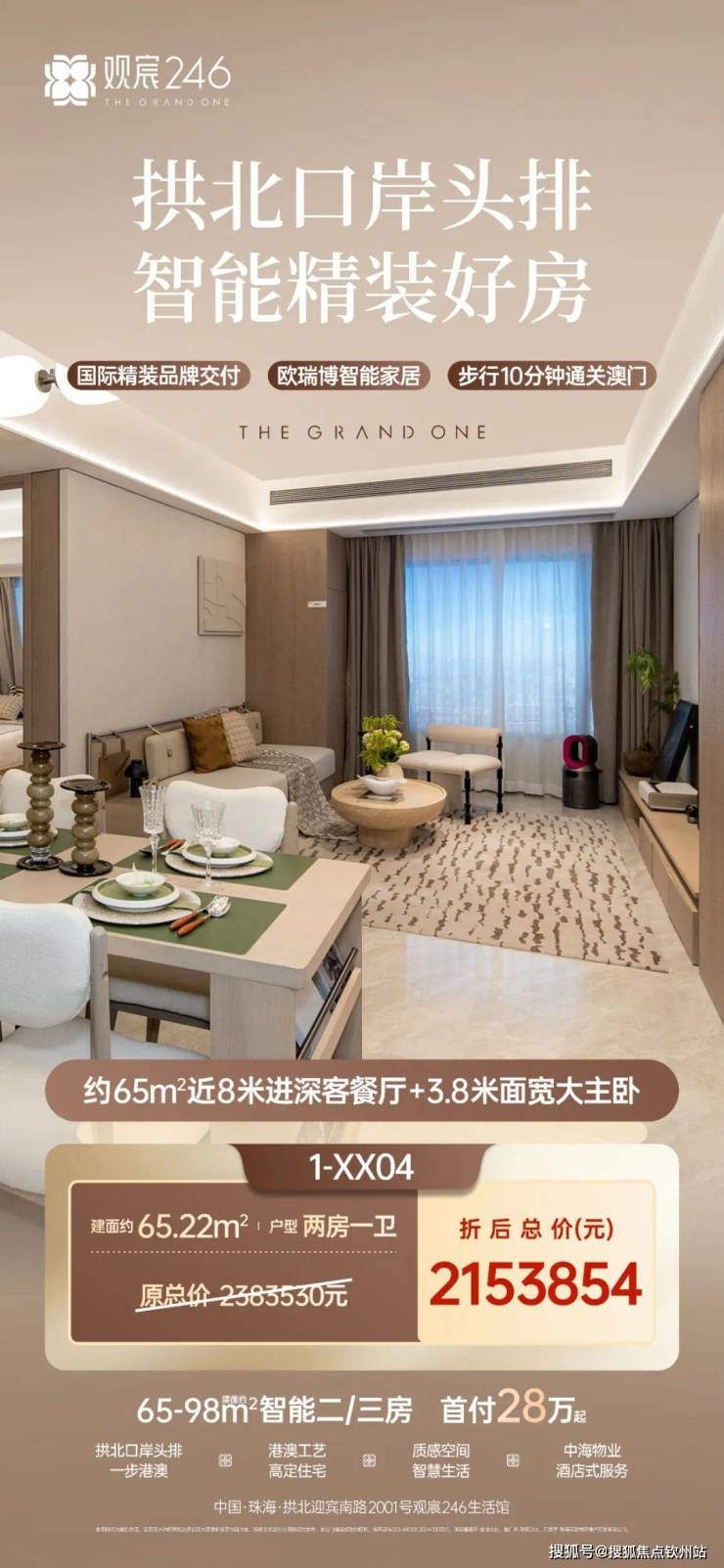 观宸246项目为不负珠海市核心区域拱北这块最珍贵的土地,项目从打造地标级立面、酒店式公区、精致绿洲园林,到精研户型、甄选国际品牌精装,无一不以港澳精工匠心打造。