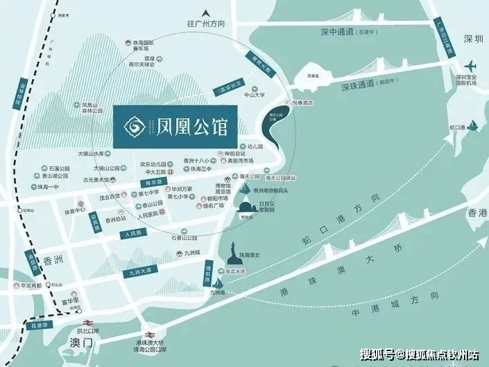 项目位于珠海市香洲区香湾街道,门口八百米即为珠海主干道情侣路;凤凰公馆依山而建,背靠珠海龙脉凤凰山,面朝珠海政府规划的“一带九湾”中的核心湾区-凤凰湾,凤凰公馆也因其优异地势格局及山海相融的环境而被正名。