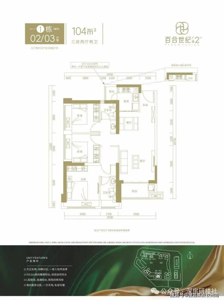 这次准备推售百合世纪广场二期(B-02地块),总占地面积约3.6万㎡,总建筑面积约27.03万㎡,计容建筑面积约19.38万㎡,容积率5.38,绿化率40%,共由3栋7个单元组成,总高是31-48层的住宅,其中1栋1单元住宅42F,1栋2单元住宅47F,2栋1单元住宅46F,2栋4/5单元住宅48F,3栋1/2单元住宅31F,另外2栋2单元公寓30F,2栋3单元商务办公楼22F,4栋是1所九班制幼儿园。