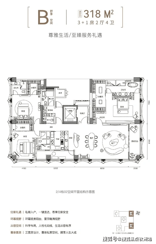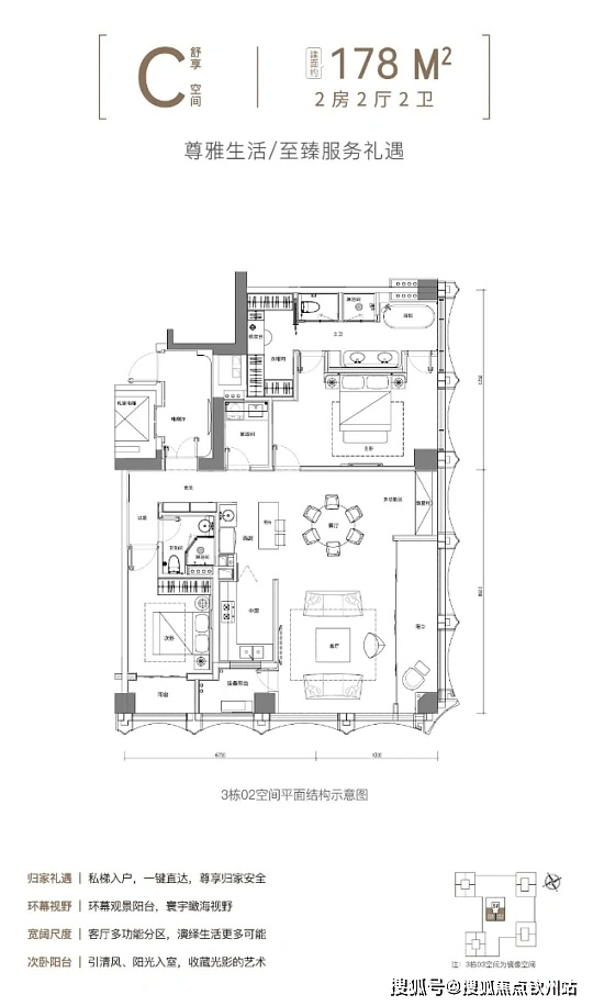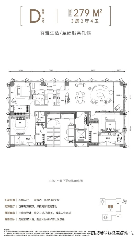 户型:主力为180㎡以上大平层及复式