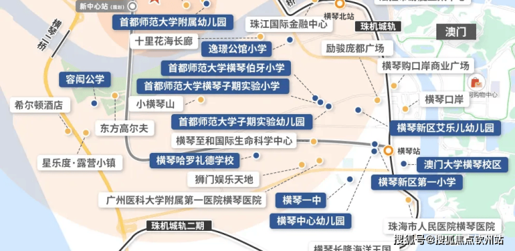 ·交通配套:北接杧洲隧道(建设中),与横琴二桥、洪鹤大桥等快速连通,1 公里内有多个公交站点,临近横琴口岸,规划中的横琴城市轨道交通 L1 线厚朴道站也在附近,可畅享 1 小时湾区生活圈。