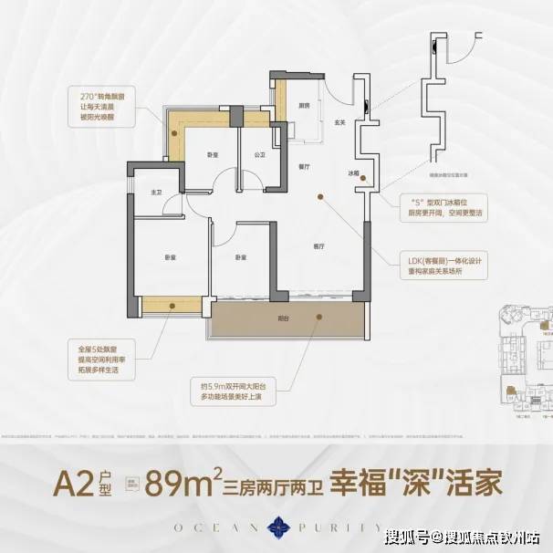 89㎡3房2卫:适合刚需家庭,空间布局紧凑。
