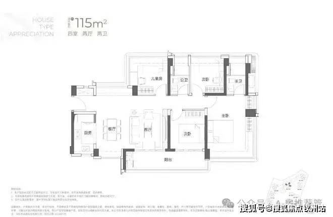 建面约115㎡4房2厅2卫