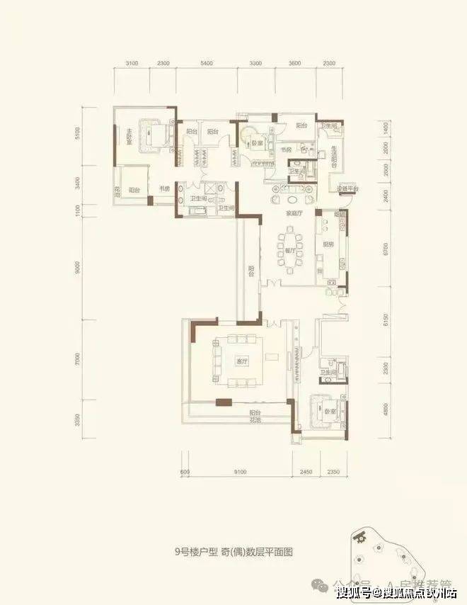建面约340㎡复式,4+1房2厅6卫