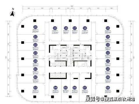 无中柱核心筒结构,满足各类企业需求,投资自用目光聚焦,全岛写字楼罕有高实用率。