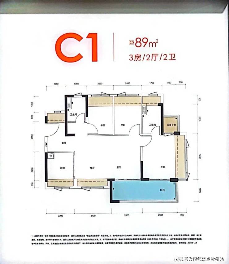 89㎡的3房2厅2卫,折后总价272-289万/套,单价3.05-3.25万/㎡。