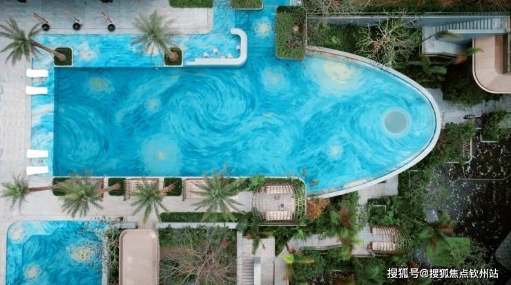 新加坡樟宜机场同款立体园林,约150米景观中轴移植热带、亚热带乔木,莫奈花园般度假感酒店园林,约8.6米泳池飞瀑与贝壳亭构成网红打卡地。更有约700㎡游艇造型星空无边际泳池,池底镶嵌梵高《星月夜》,日咖夜酒会客厅诠释顶奢度假美学。