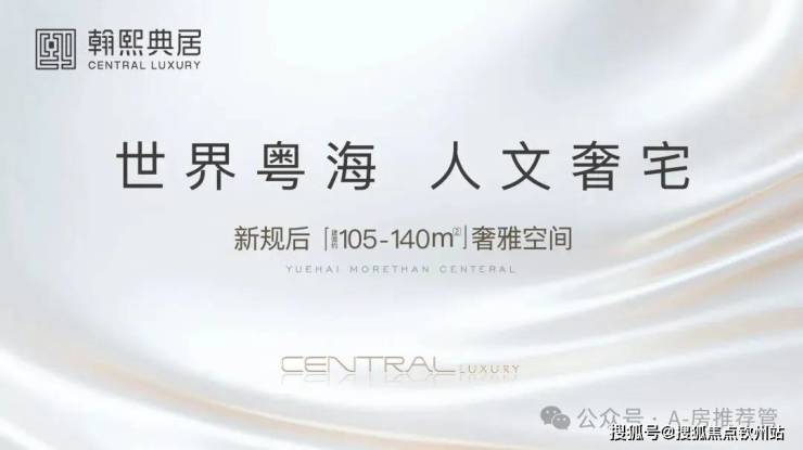 奢阔空间丨中心极境 礼献粤海 翰熙典居,粤海十年之后再上新,全新奢居综合体礼献峯层。可售主力户型新规后建面约105-140㎡奢雅空间,全明方正户型将空间奢阔感与生活舒适度完美契合。明星户型超6米阳台开间,全维度巨幕景观视野,尽揽湾心万千风景。