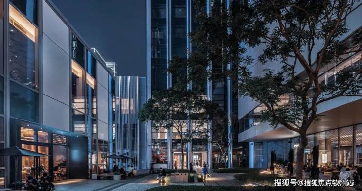 外立面(由高定珠宝手工几何切面汲取灵感,线条俐落有致,一面是繁华璀璨、一面是绿意摇曳):