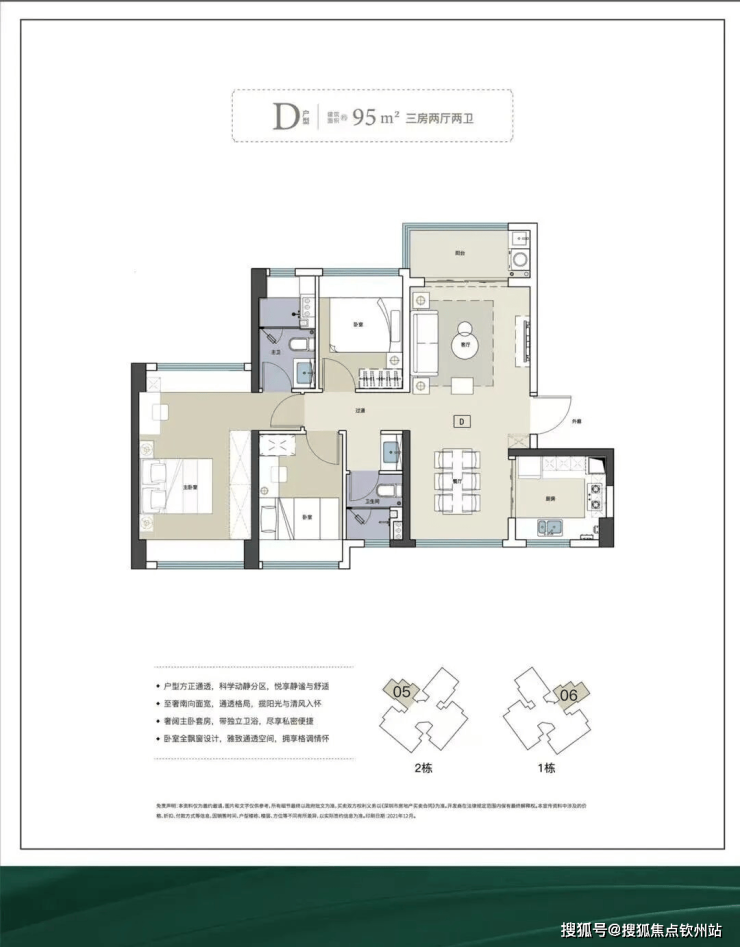 面积为75-120㎡三至四房,使用率超80%,高赠送,三开间朝南。