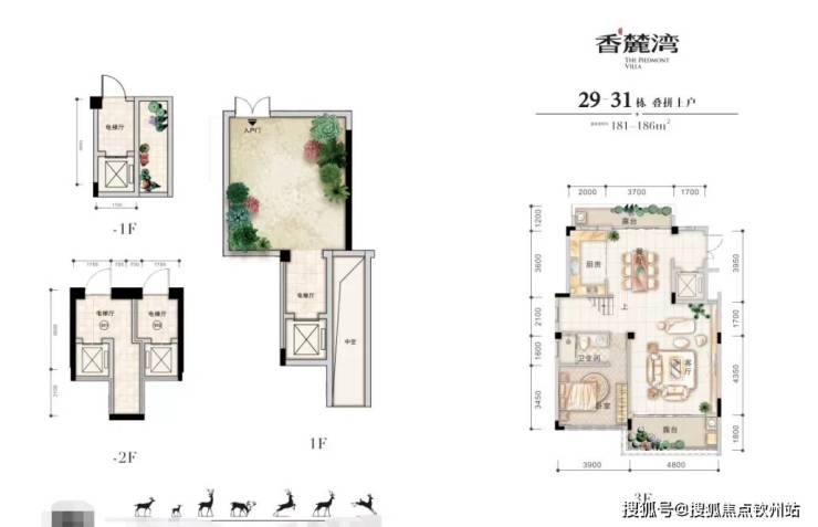 在售户型面积:叠拼182㎡ 3房2厅3卫,