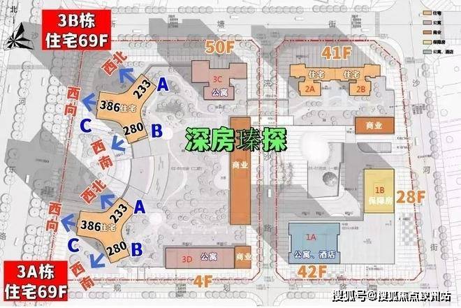 深业世纪山谷二期,总建筑面积约16.92万㎡,计容建筑面积约16.87万㎡,3栋A座/3栋B座住宅69层,3栋C座公寓50层,3栋D座公寓4层,其中住宅是独立小区管理,总规划348户,车位配比是给到了1:2。