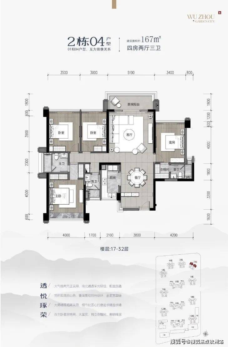 以下为2栋17-32层户型图