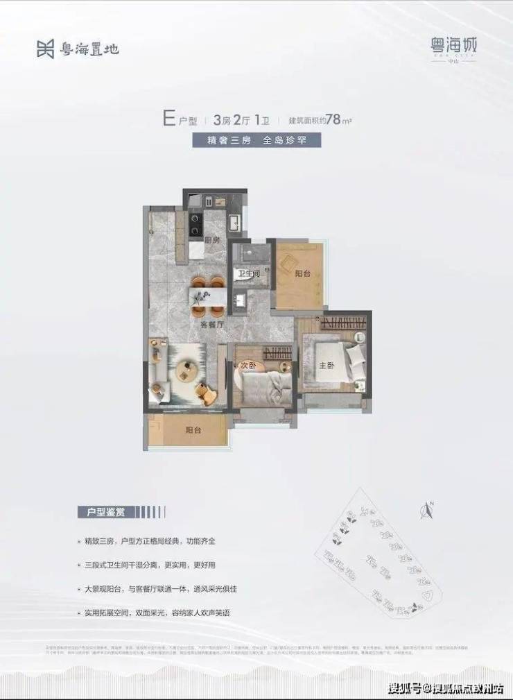 中山马鞍岛粤海城深研空间需求与人居习惯的细致苛求,精雕细琢建面约79-123㎡一线滨海品质奢宅,以迎合不同居住人群的需求。