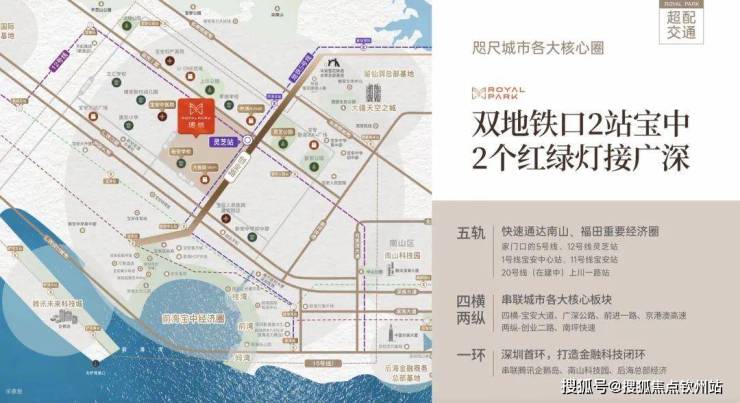 交通配套:项目为“双地铁物业”,距离5号线与12号线换乘站灵芝站仅约200-400米(不同地块略有差异),2站直达宝安中心,5站至前海湾站,12号线串联南山、蛇口等核心区。