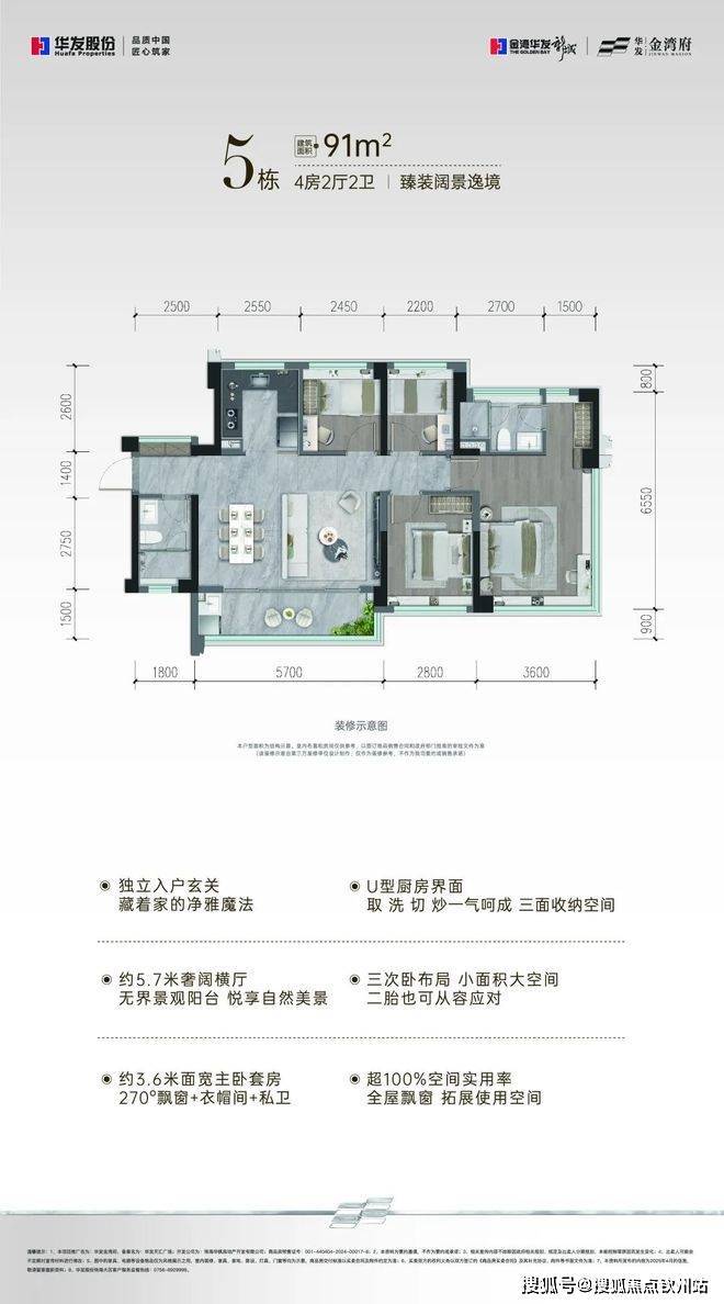 产品方面,建面约91-116㎡超核四房,实现超100%实用率+270°环幕飘窗的空间魔法演绎,惊喜拉满。