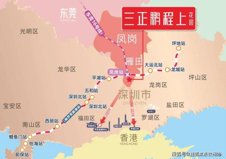 2022年3月31日,深惠城际获批,凤岗雁田迎来了凤岗镇南部枢纽地区TOD规划!凤岗站距离本案一期直线距离约800米,距二期约600米,深铁517亿背书 ,现正在火热建设中,预计2026年开通运行;三正鹏程上花园是名副其实的TOD项目,也是凤岗唯一在售的地铁物业。