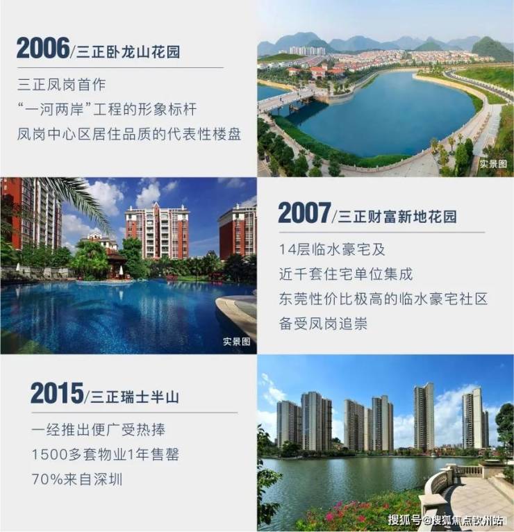 三正地产深耕品质人居二十余载,以精工务实的“理工派”作风打造多项人居代表作,在凤岗已精心打造卧龙山花园、卧龙山水月湾、财富新地花园、财富新地商厦、上河坊、瑞士半山、瑞士公馆及鹏程上花园共8个项目,盘盘经典,栋栋高品质,被誉为本土颇具竞争力的品牌开发商。