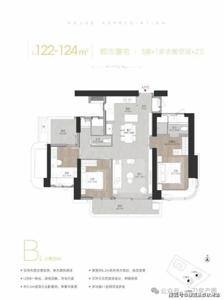 111-112㎡3房2厅2卫,新推户型,纯正三房,竖厅户型。122-124㎡3+1房2厅2卫,有竖厅、横厅和双龙抱珠户型,跟之前03地块户型完全一致。