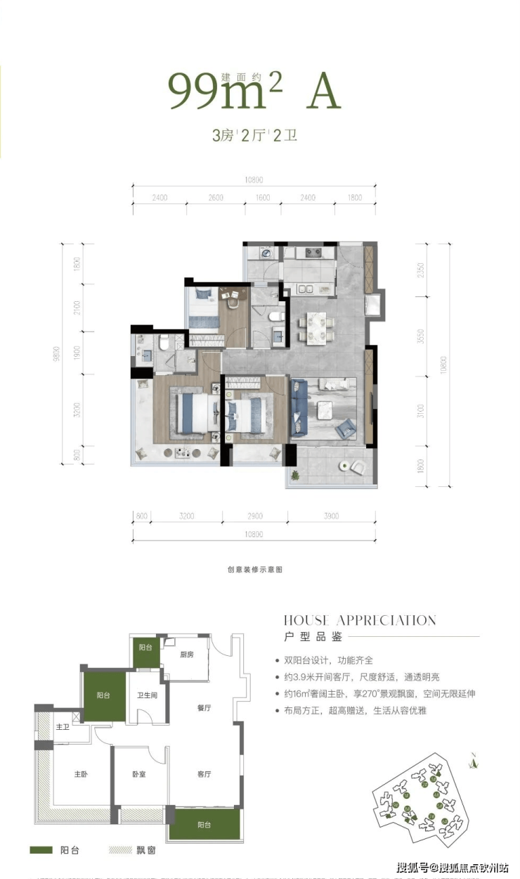 户型亮点:双阳台设计,布局方正,超高赠送