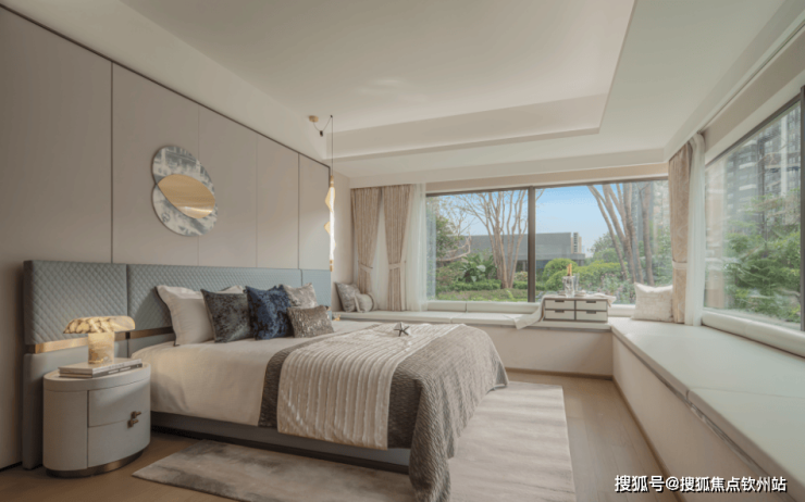 户型亮点:约 38 ㎡星级主卧套间,奢享 270°环幕飘窗、酒店式衣帽间+主卫