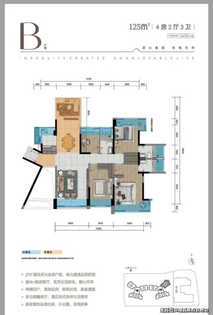 逾11米阔景采光面 125㎡双套间4房2厅3卫