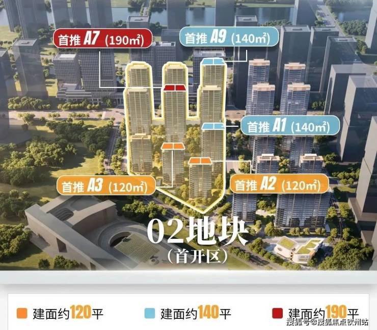 【项目首开】项目首开02地块,面积段涵盖约120、140、190㎡,都是新规户型,均为南北对流双阳台四房,专梯入户,低密纯粹