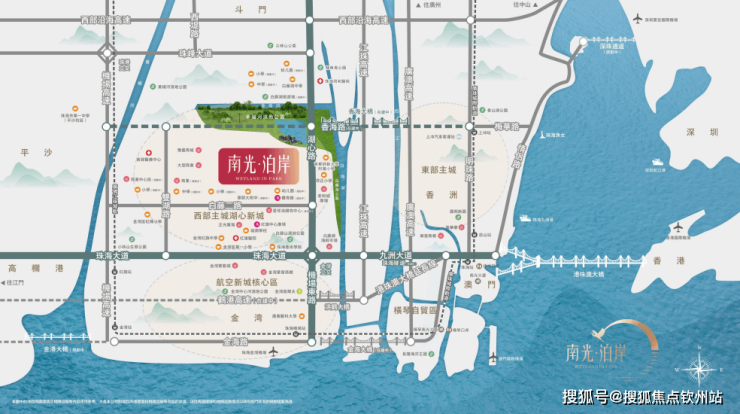 交通便捷:处于香海大桥桥头堡位置,临近珠海大道等交通干线,靠近珠海中心站(鹤洲)枢纽,可快速通达珠海各区域及广州、佛山等城市。