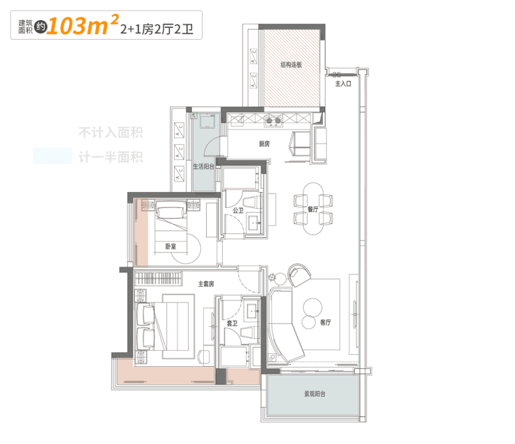 户型最小起步,全是103平起。同质而居,实现圈层共鸣。
