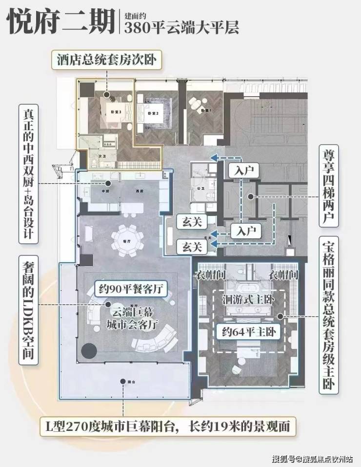 悦府二期,是东莞少有的纯粹超大户型豪宅小区,包括两种户型,建面约308㎡、380㎡,仅230户。虽然目前价格还没有正式公布,但总价估计是妥妥的2000万元级别了。拥有一套悦府二期,不仅是拥有高阶生活的尊崇和雅致,更是一种身份的象征。
