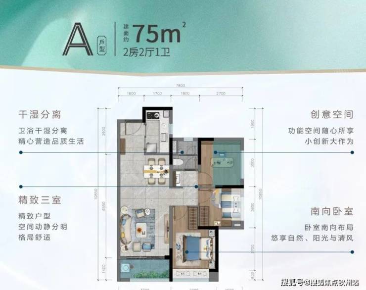 建面约75㎡2+1拓展空间,低总价轻松上车