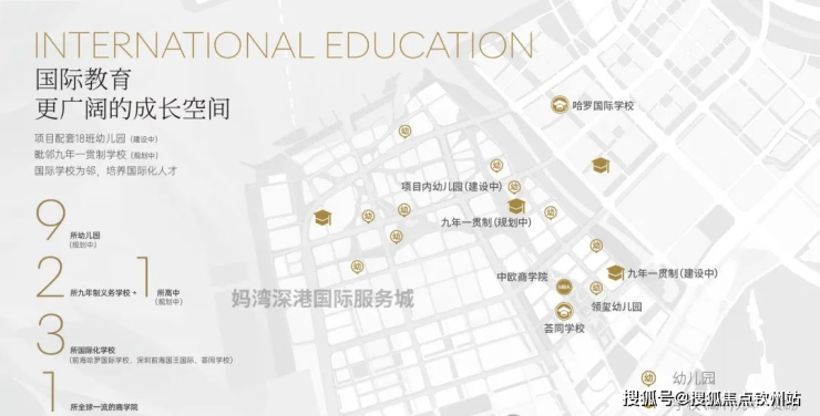 学校:楼下配备18班幼儿园,隔壁规划1所九年义务制学校;荟同,中欧等国际教育资源