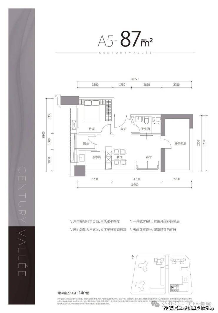 🎆 【产品】约67-87㎡1-2房,百米之上,天赋臻寓,70年产权,户户带阳台,拥有约3.3m超舒适层高,5梯14户,高定奢装,世纪山谷首发之选。