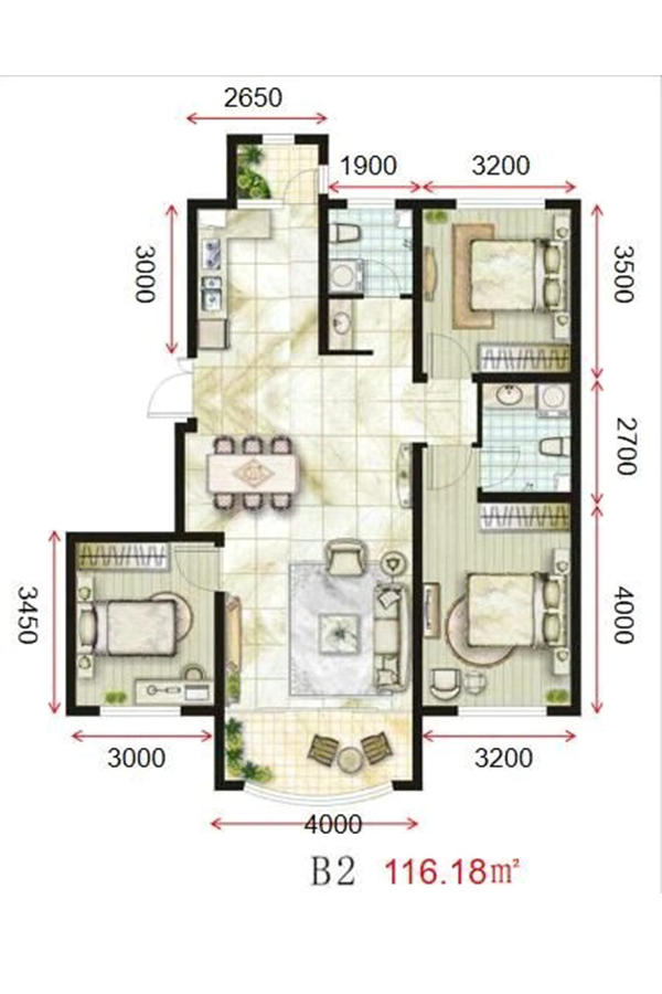 3室2厅2卫-中冶·滨江半岛B2户型