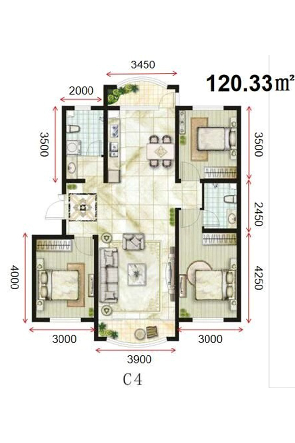 3室2厅2卫-中冶·滨江半岛C4户型