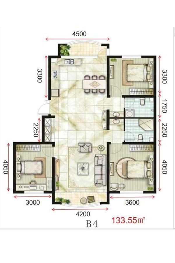 3室2厅2卫-中冶·滨江半岛B4户型