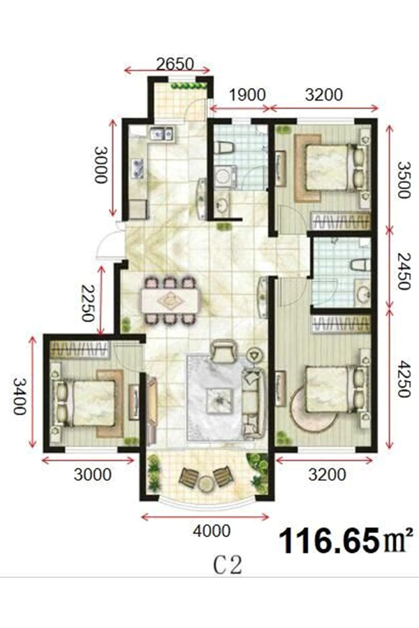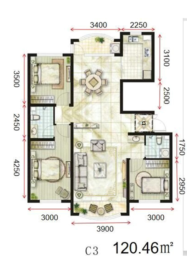3室2厅2卫-中冶·滨江半岛C3户型