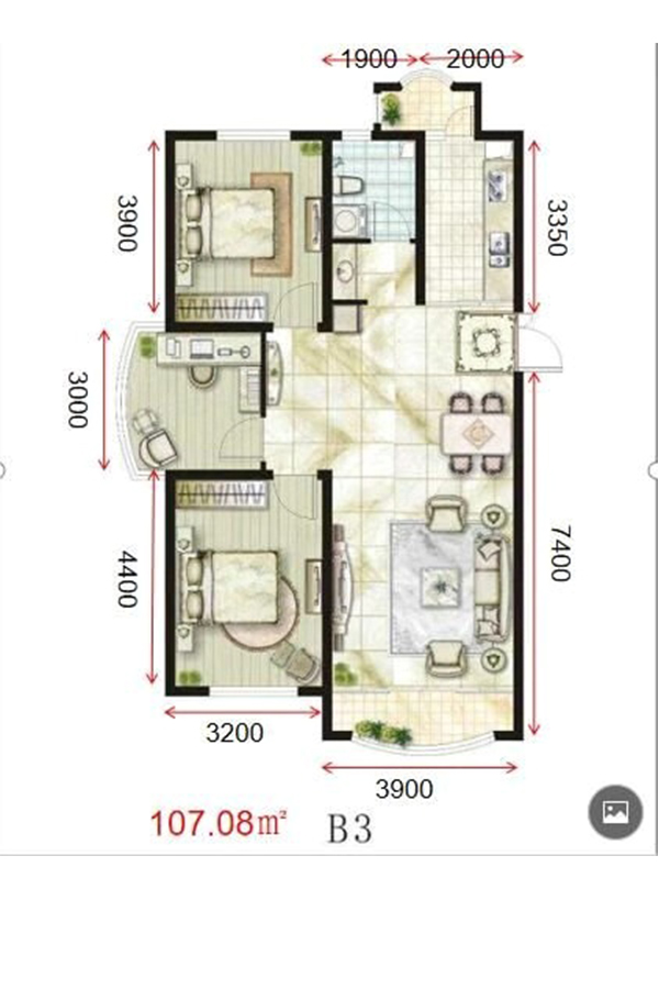 2室2厅1卫-中冶·滨江半岛B1户型