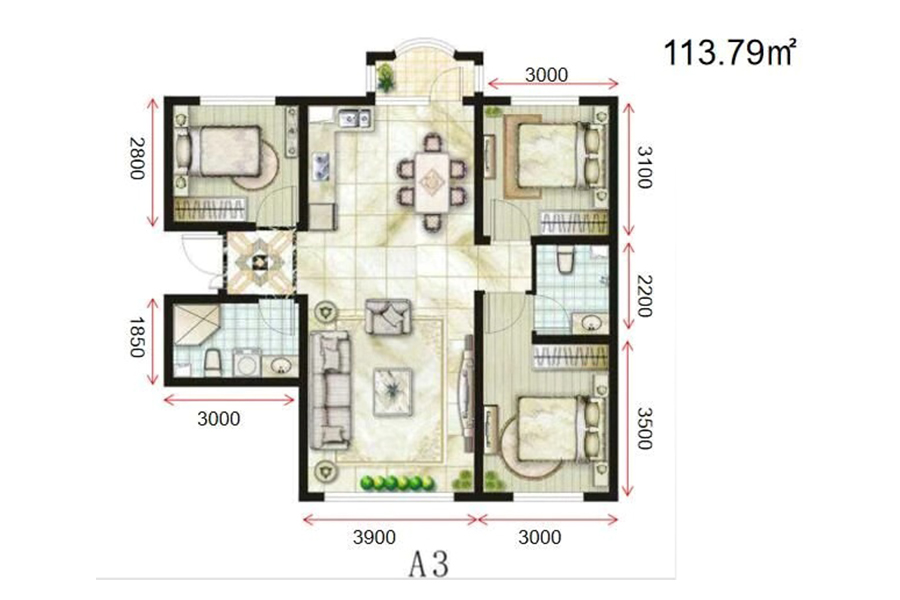3室2厅1卫-中冶·滨江半岛A3户型