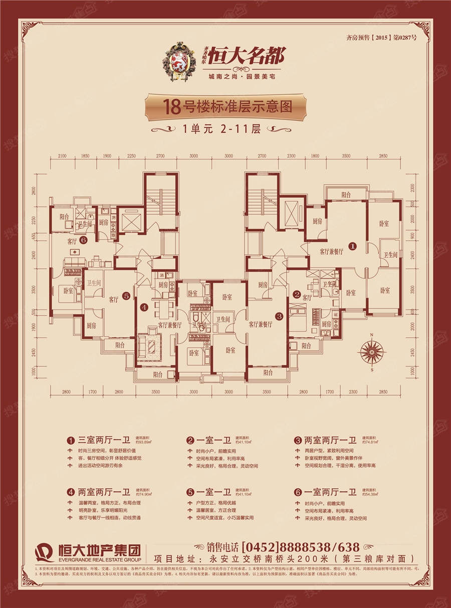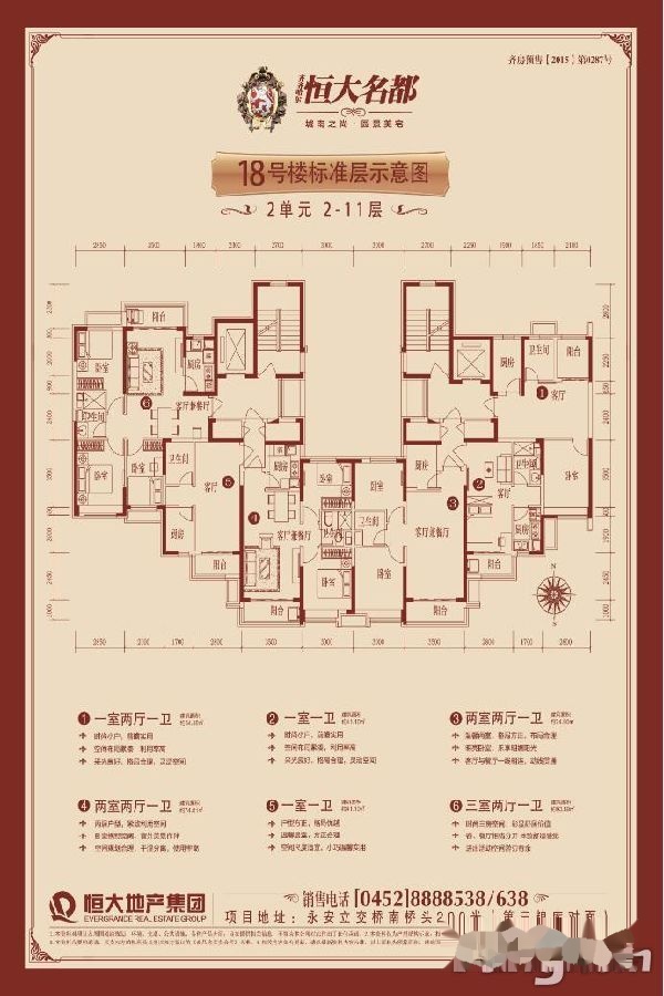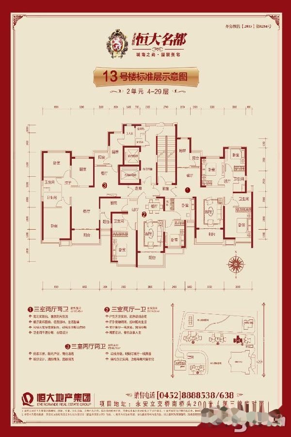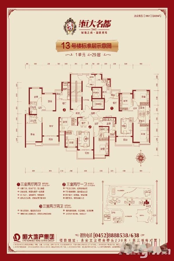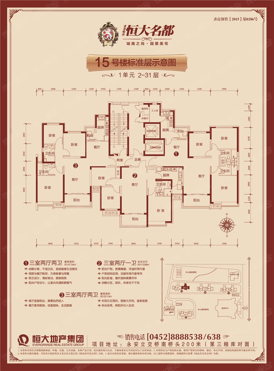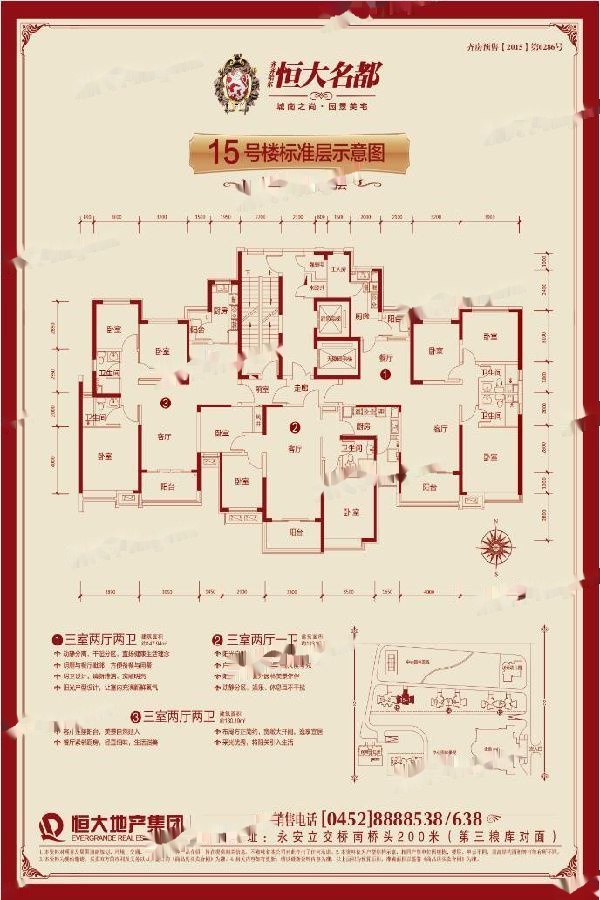 3室2厅2卫-15#楼标准层1单元2-33层3